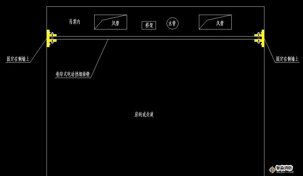 先在梁底設置一定高度的密封固定措施,供機電管線穿過,再將擋煙垂壁安裝在固定設施下方