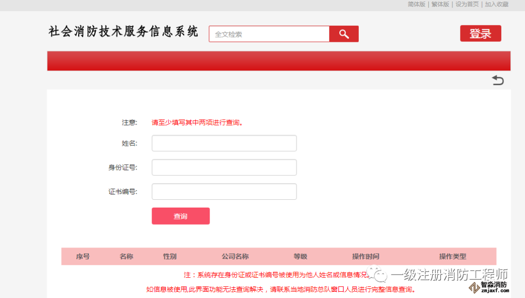 如信息被使用,此界面功能無法查詢解決,請聯系當地消防總隊窗口人員進行完整信息查詢。