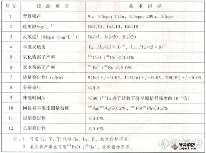 新安裝的儀器的檢定,應(yīng)符合儀器說明書中規(guī)定的計量要求,其計量特性應(yīng)優(yōu)于規(guī)程《JJF1159-2006 四極桿電感耦合等離子體質(zhì)譜儀校準(zhǔn)規(guī)范》性能指標(biāo)。使用中和修理后的儀器的檢定,應(yīng)符合中華人民共和國國家計量技術(shù)規(guī)范《JJF 1159-2006 四極桿電感耦合等離子體質(zhì)譜儀校準(zhǔn)規(guī)范》中規(guī)定的性能指標(biāo)-表1。