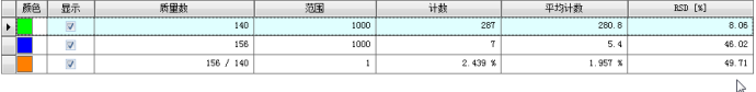 以1×10-2 mg/L Be、In、Bi、混合溶液進(jìn)樣,測量質(zhì)量數(shù)9,115,209處的離子計數(shù),在不少于2h內(nèi),重復(fù)測量不少于10個數(shù)據(jù),并計算相對標(biāo)準(zhǔn)偏差RSD,即為儀器短期穩(wěn)定性。